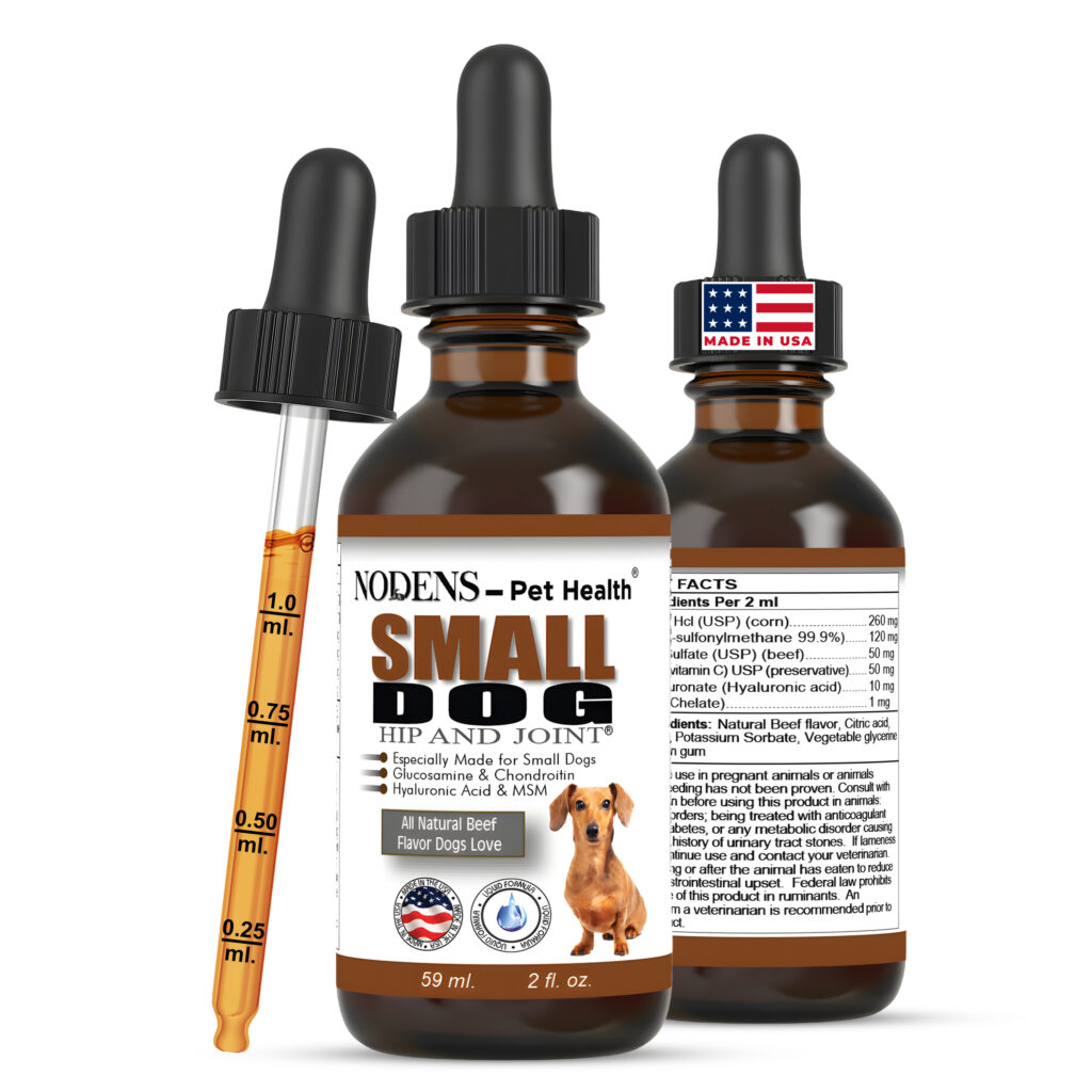 Nodens Small Dog Hip and Joint – Liquid Glucosamine for Small Dogs with Chondroitin and Opti-MSM®, Hyaluronic Acid for Improved Joint Flexibility and Natural Pain Relief from Arthritis 2 floz bottle